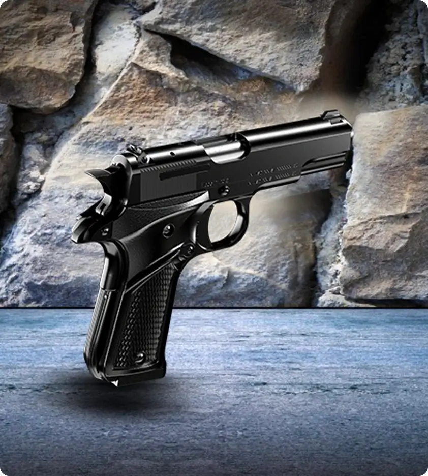 Type : Pistol Calibre : .45 ACP Action : Single Action Hammer Fired Semi-Automatic Features : Hammer, Adjustable Sights, Magazine Catch Safety : Thumb, Grip, Half-Cock Safety Grip : Wooden / G-10 Capacity : 7+1/10+1 Barrel Length : 4.25 Inches Weight : 1000 grams (without magazine) Material : Steel Finish : Cerakote Recoil Controller : Recoil Shocker with Recoil Spring Trigger : Star-Trigger
